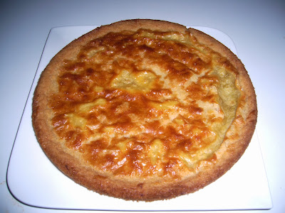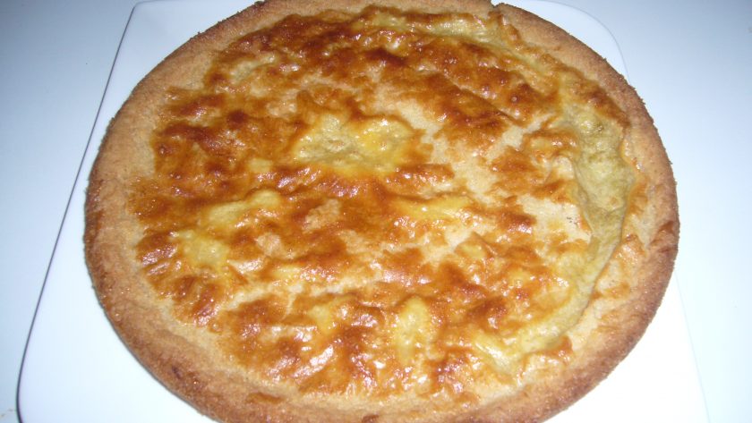 Verdeel het deeg gelijkmatig over het bakblik en breng met een kwastje het ei aan op de bovenkant. Trek eventueel met een vork wat strepen over het deeg en bak de boterkoek in 25-30 minuten gaar.