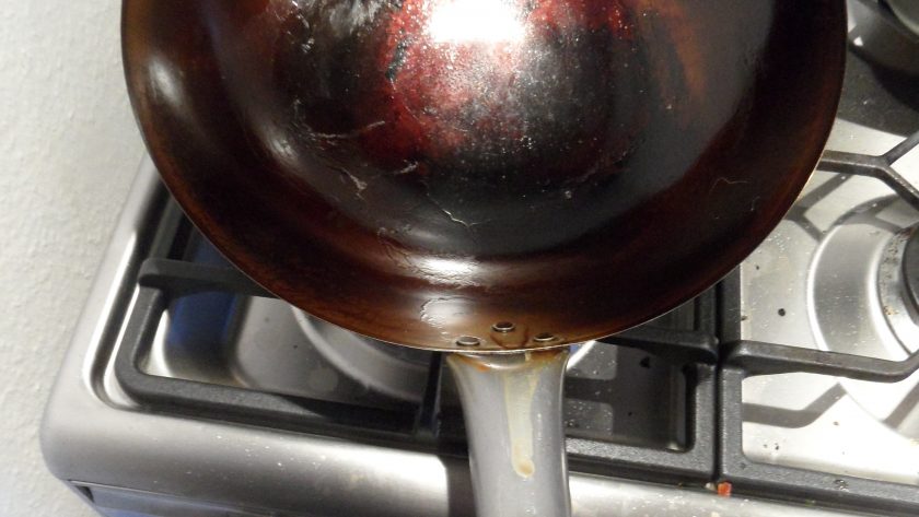 Nou is het wel zo dat de ingebruikname van een wok, zoals ik hem heb gekocht, nog enige voorbereiding vraagt.