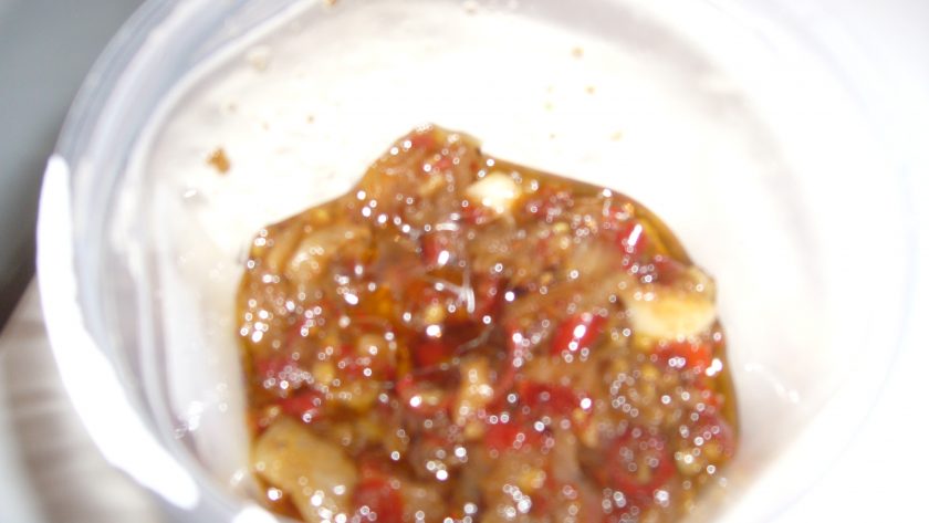Wil je variëren in scherpte, gebruik dan niet minder pepers, maar andere minder of meer scherpe. Minder scherp is bijvoorbeeld de jalapeñopeper, scherper bijvoorbeeld de rawit (die ik de laatste keer heb gebruikt) of de Madame Jeanette. Houd dan wel een “brandblusser” in de vorm van karnemelk of volvette melk in de buurt.